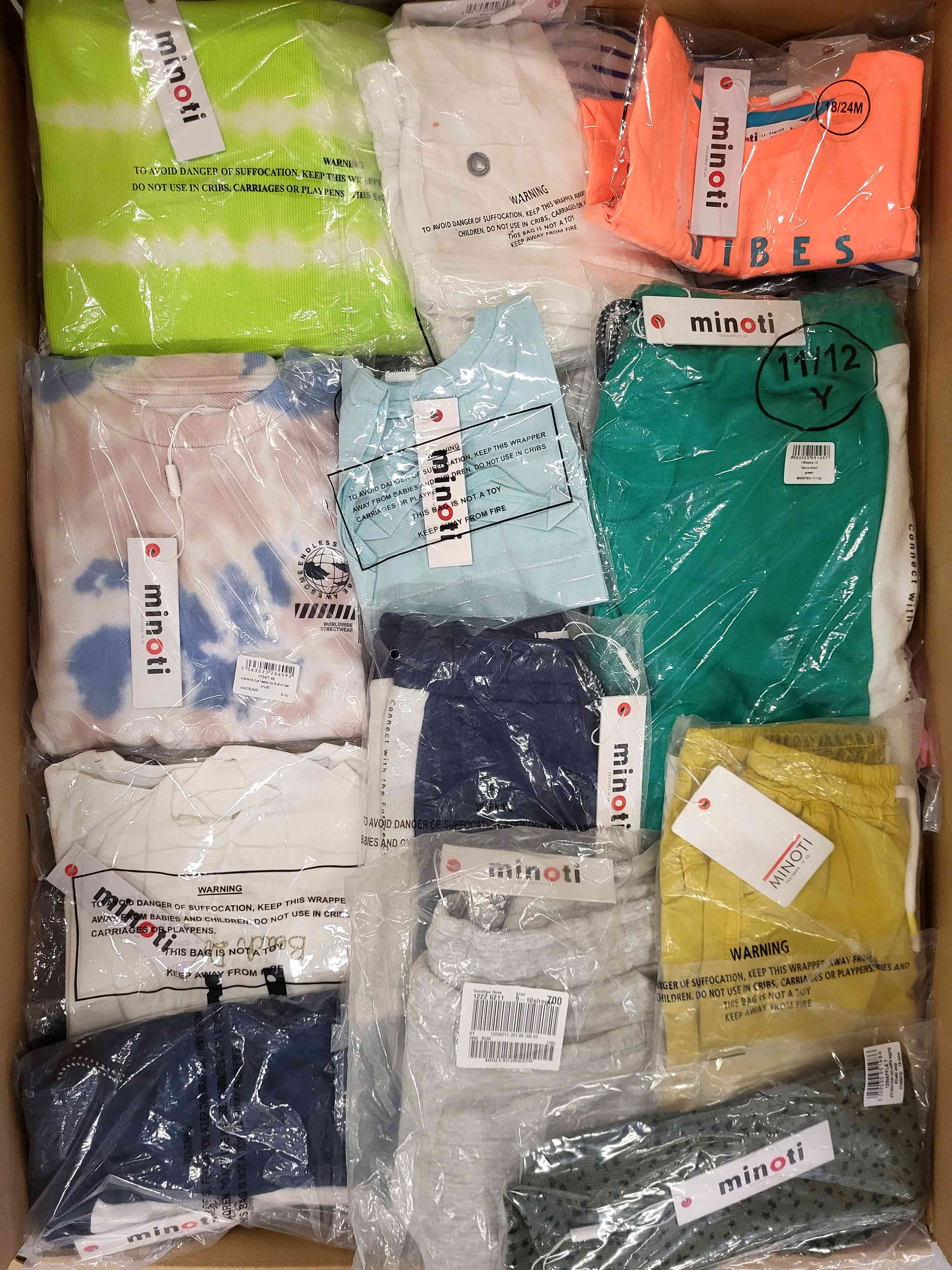 The Minoti children’s clothing bundle includes approximately 100 pieces of new, original garments designed for children aged 3 months to 14 years.