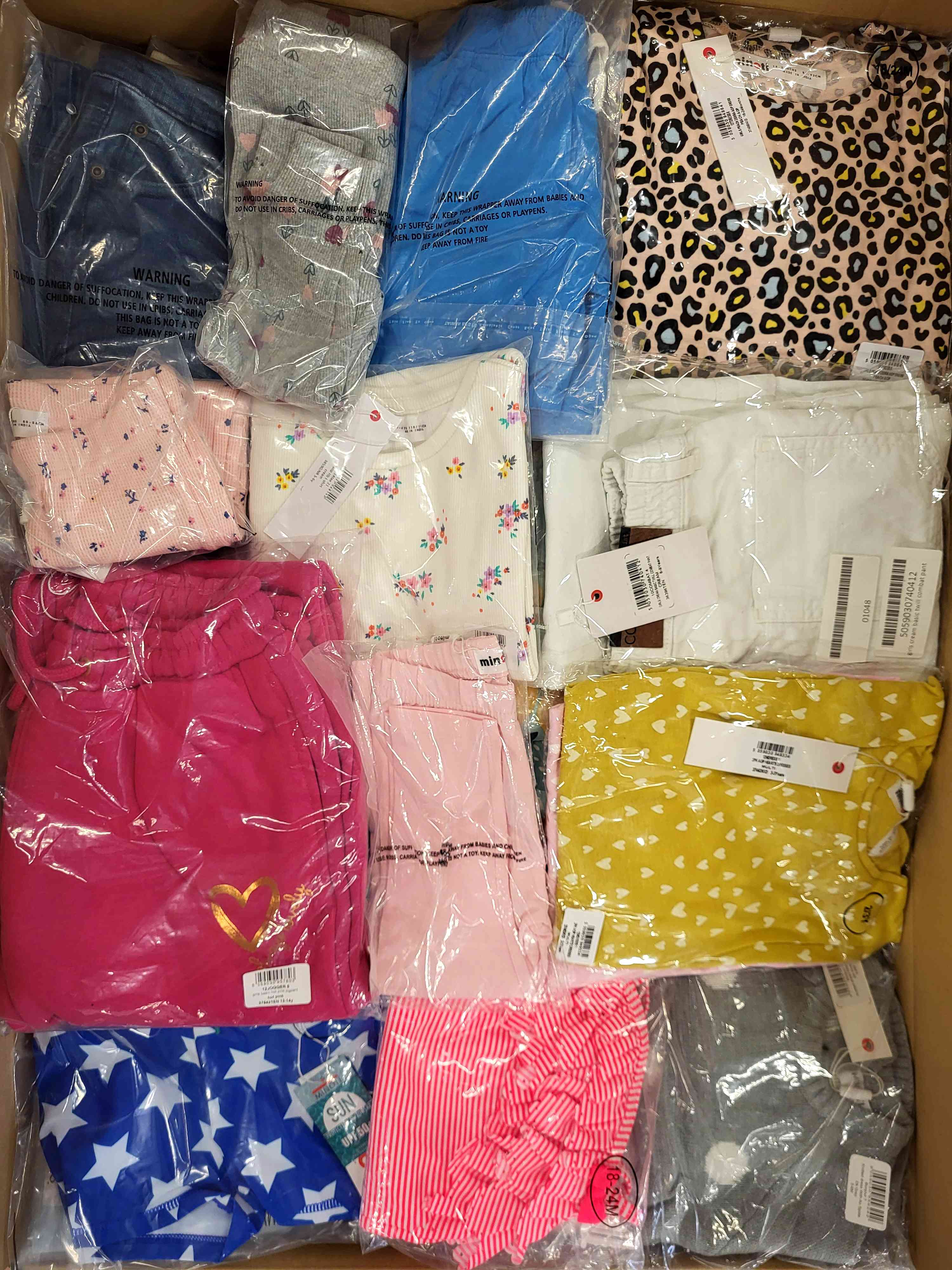 The Minoti children’s clothing bundle includes approximately 100 pieces of new, original garments designed for children aged 3 months to 14 years.