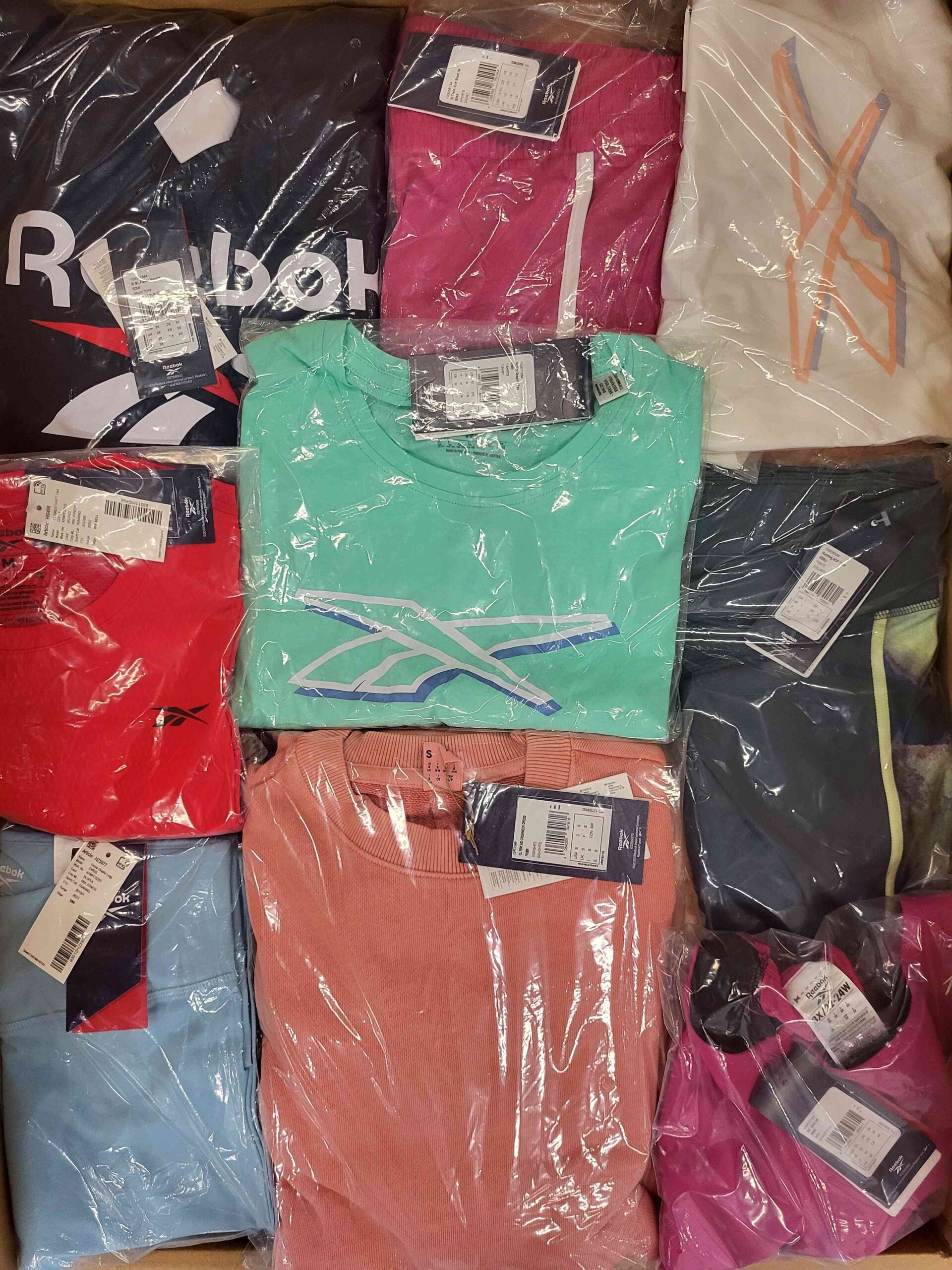 The package includes, among others: sweatpants, sweatshirts, T-shirts, leggings, tops, sports bras and jackets. One brand clothing.