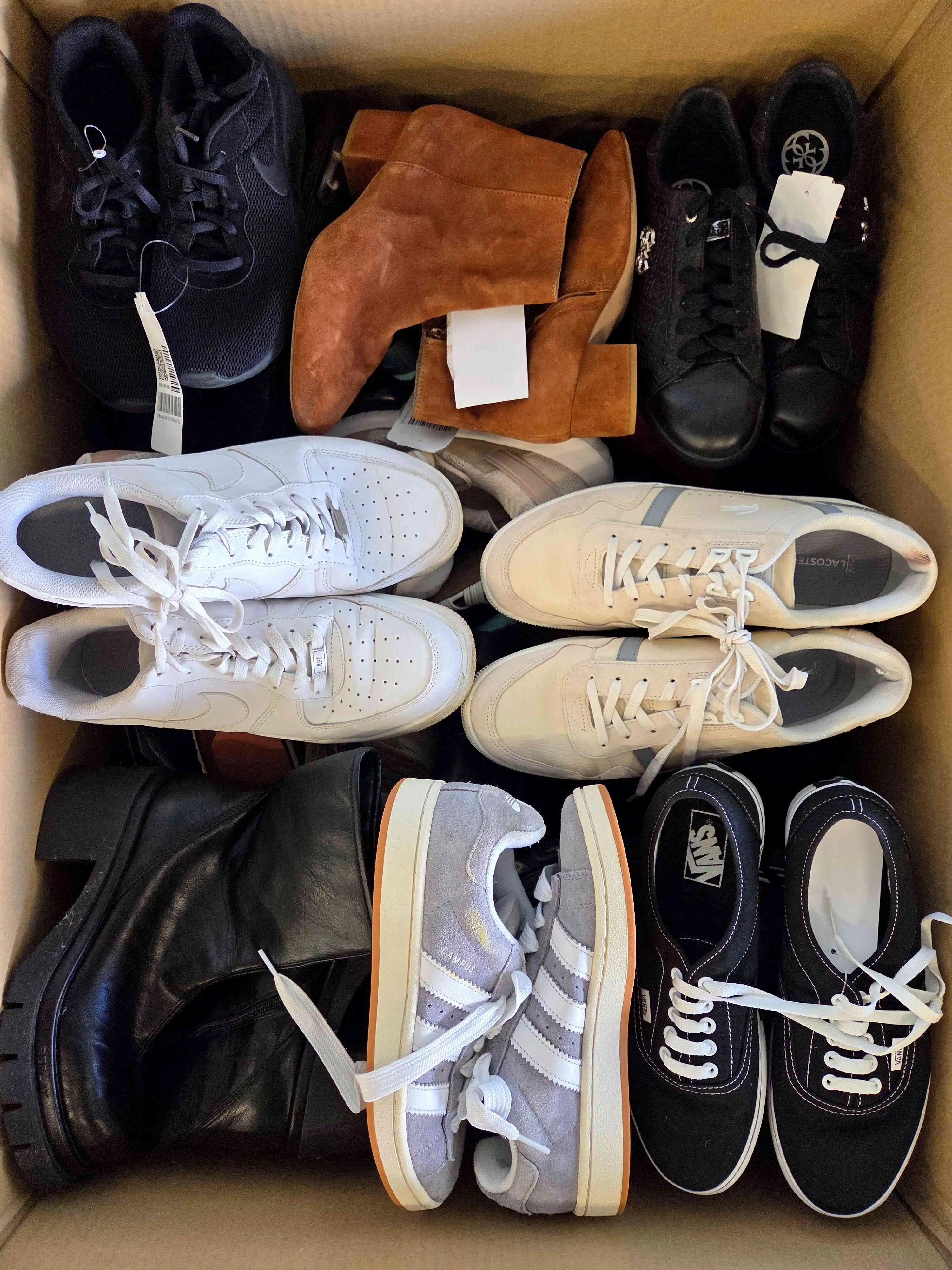 Used footwear packages. The package includes about 30 pairs of shoes (summer shoes, winter shoes, sports shoes, men’s shoes, women’s shoes, children’s shoes).