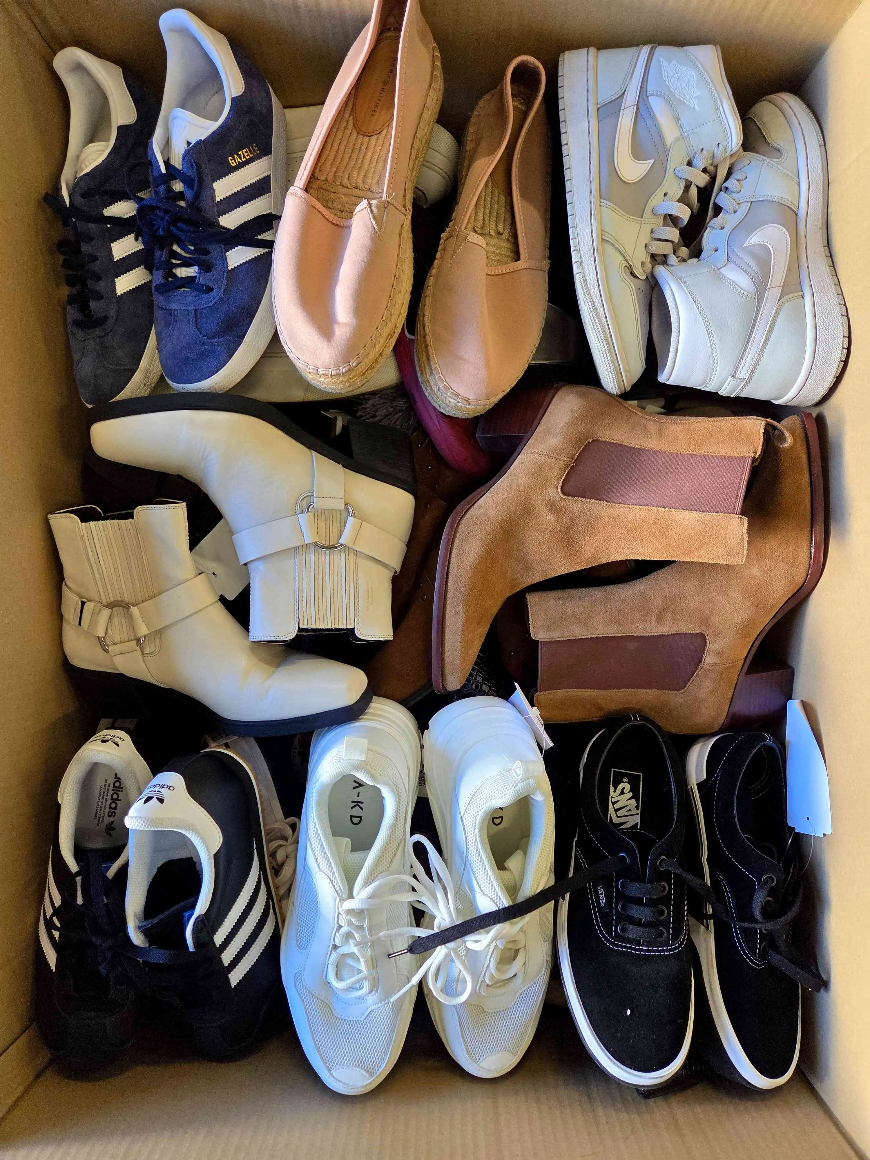 Used footwear packages. The package includes about 30 pairs of shoes (summer shoes, winter shoes, sports shoes, men’s shoes, women’s shoes, children’s shoes).
