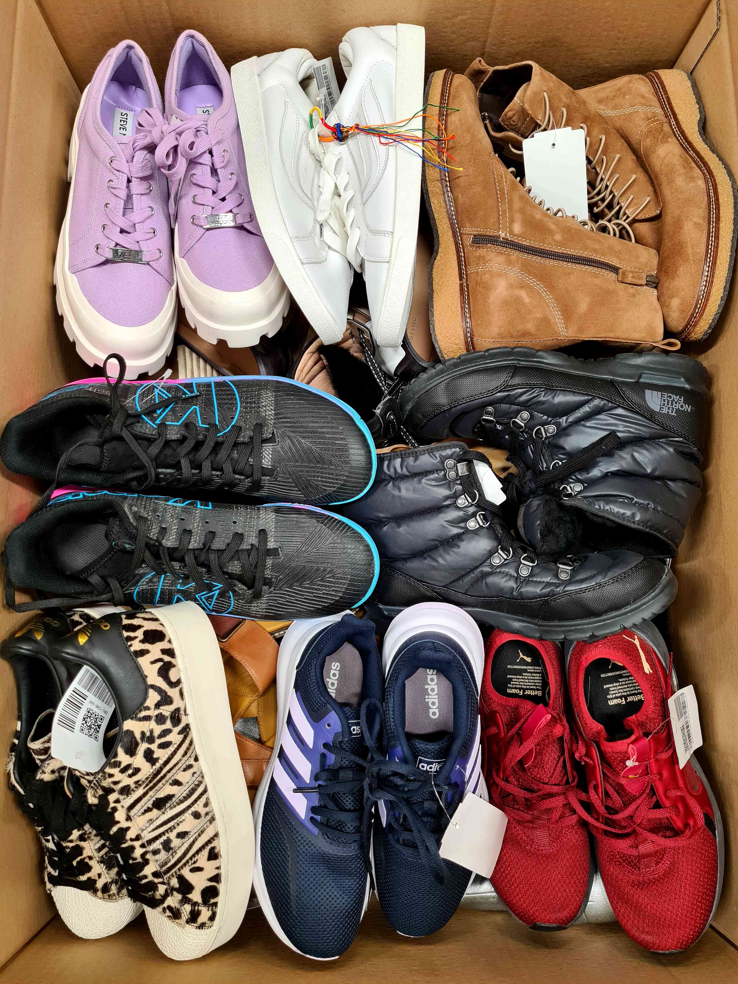 Used footwear packages. The package includes about 30 pairs of shoes (summer shoes, winter shoes, sports shoes, men’s shoes, women’s shoes, children’s shoes).
