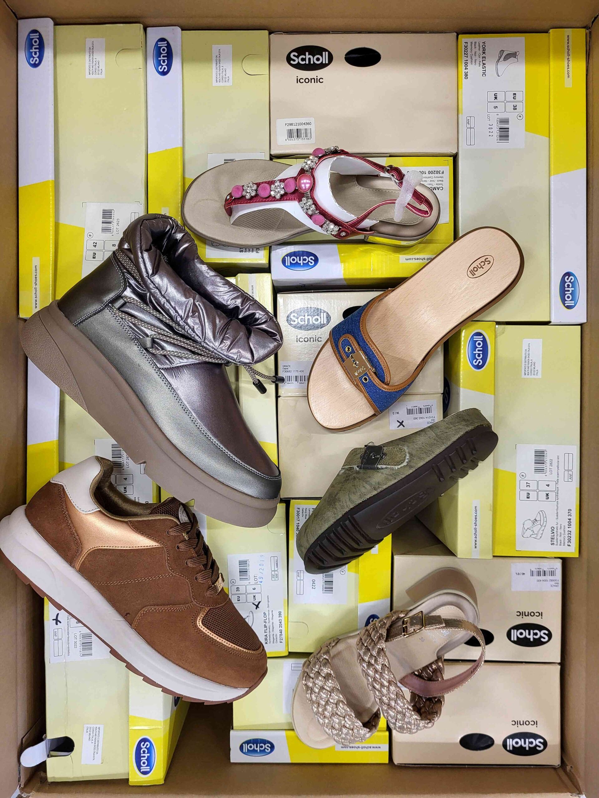 A set of new footwear directly from the manufacturer. Boots, sneakers, slides, and sandals in various colors. Original packaging included. Perfect for resale!