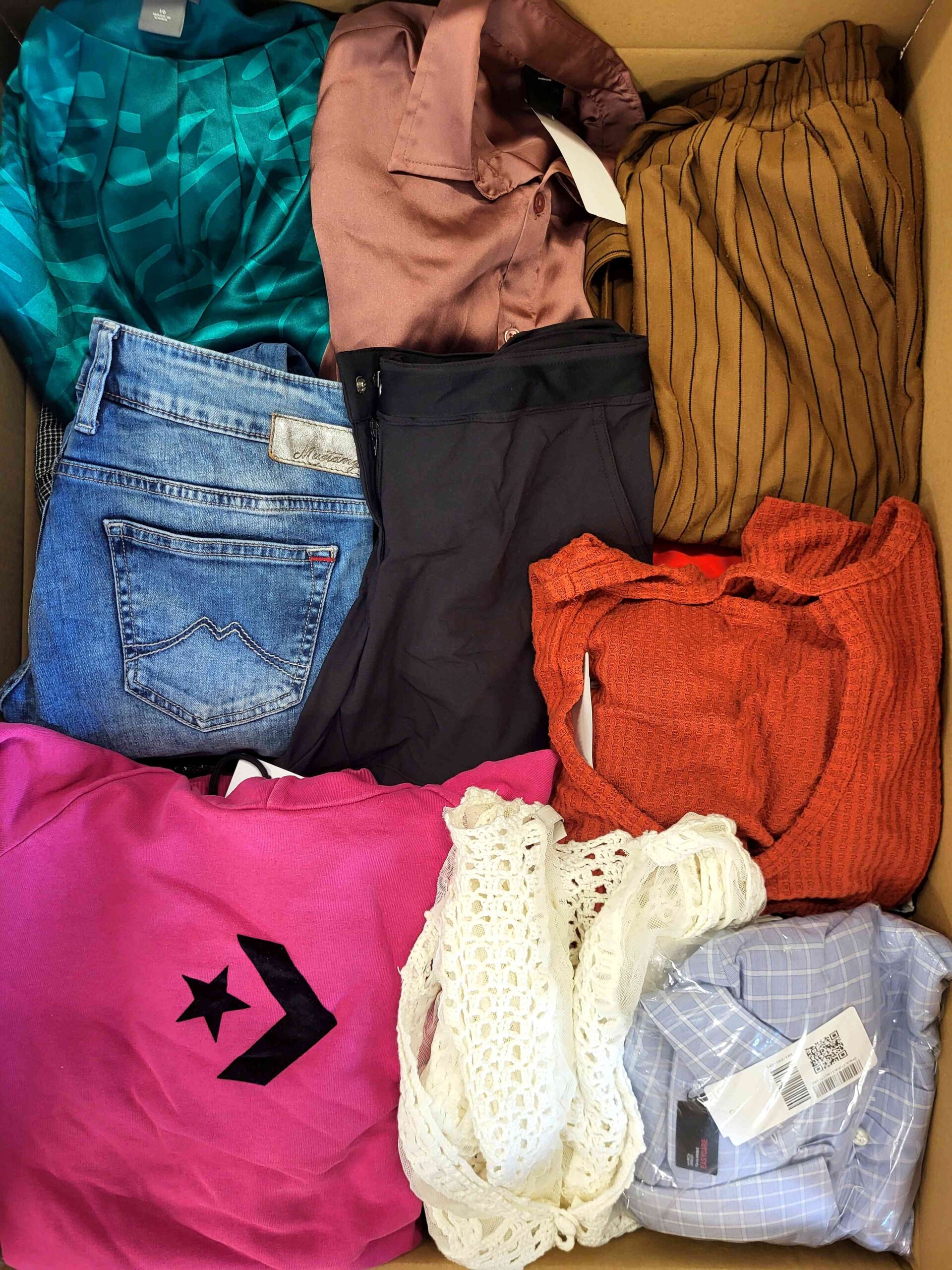 Packages of women’s clothing, used in good quality. Approx.99% women’s clothing, single units of men’s clothing. There are about 65 pieces in the package. Clothing may be from several seasons ago.