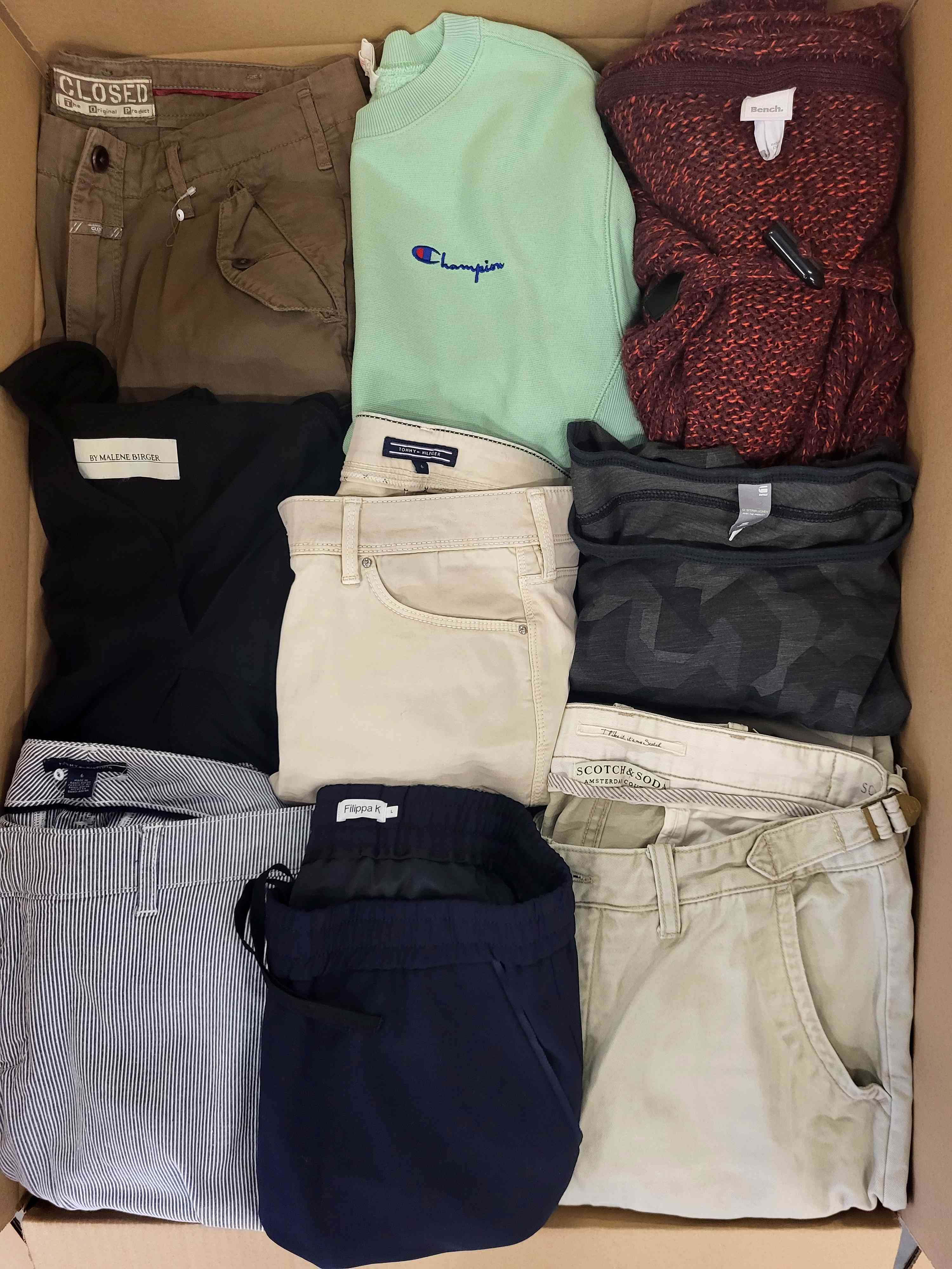 Used clothing packages of good quality are carefully selected and contain approximately 80 items of clothing, including around 20 pieces from recognizable brands.