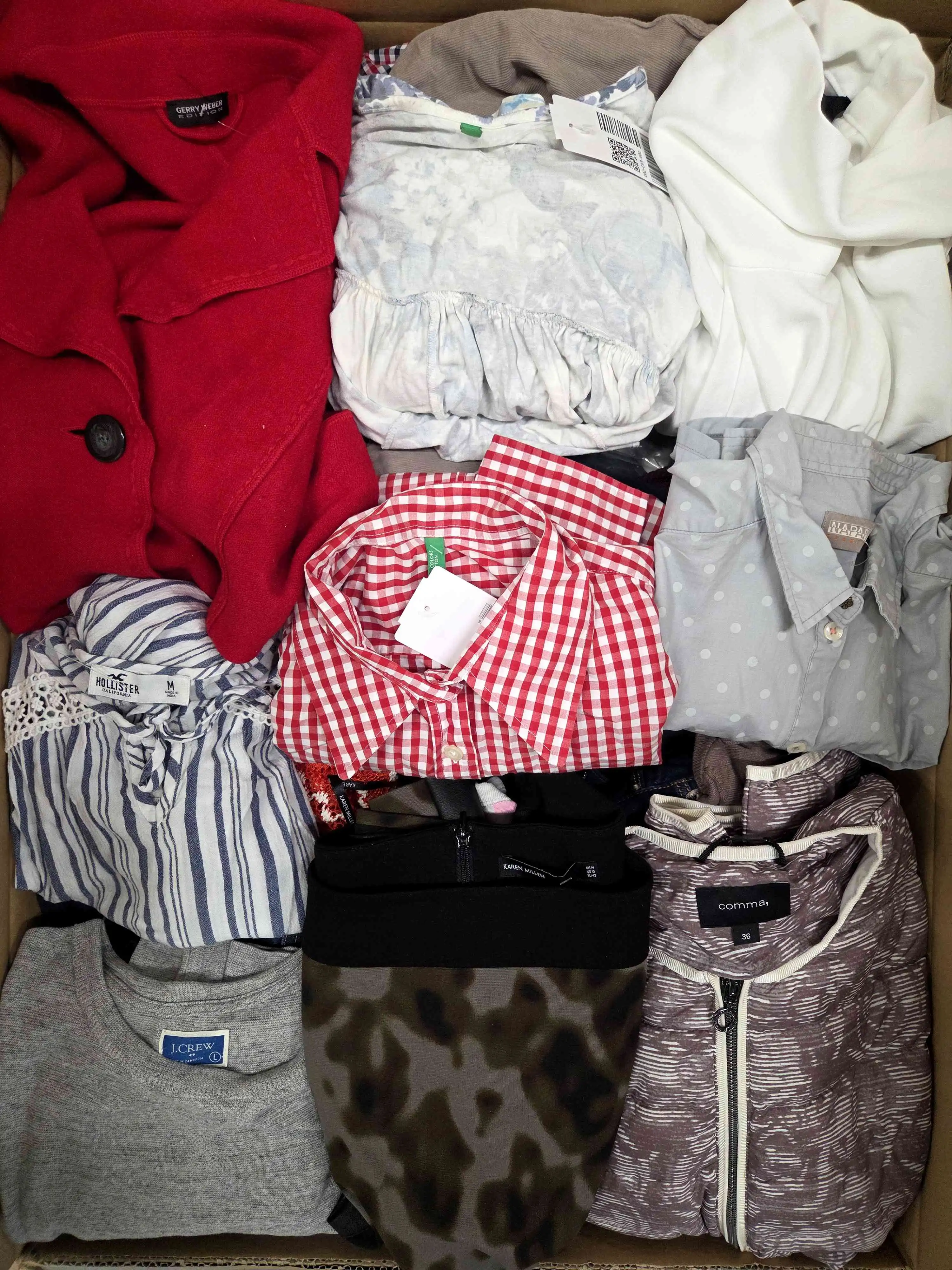 Each package is a varied mix of garments, including trousers, tops, sweaters, dresses, skirts, blazers, jackets, shirts, and vintage pieces, ready for resale. The clothing shows typical signs of wear, and in some cases, minor defects may be present, such as fading, small tears, missing buttons, or broken zippers.
