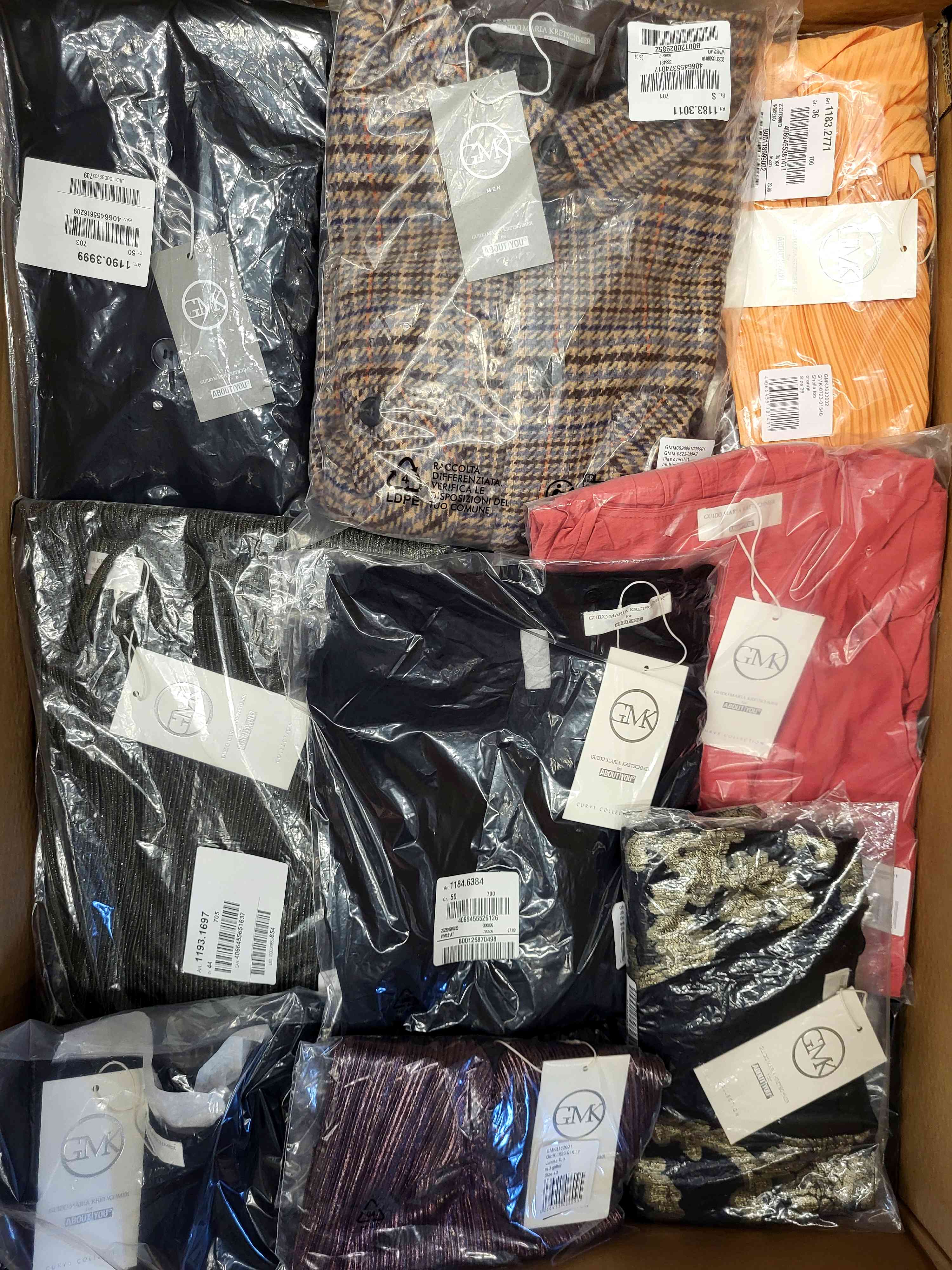 The package includes approximately 30 items of women’s clothing, including jackets, coats, jumpers, blouses, trousers, dresses, blouses, tops, belts, bags, socks. There are also men clothing in packages.