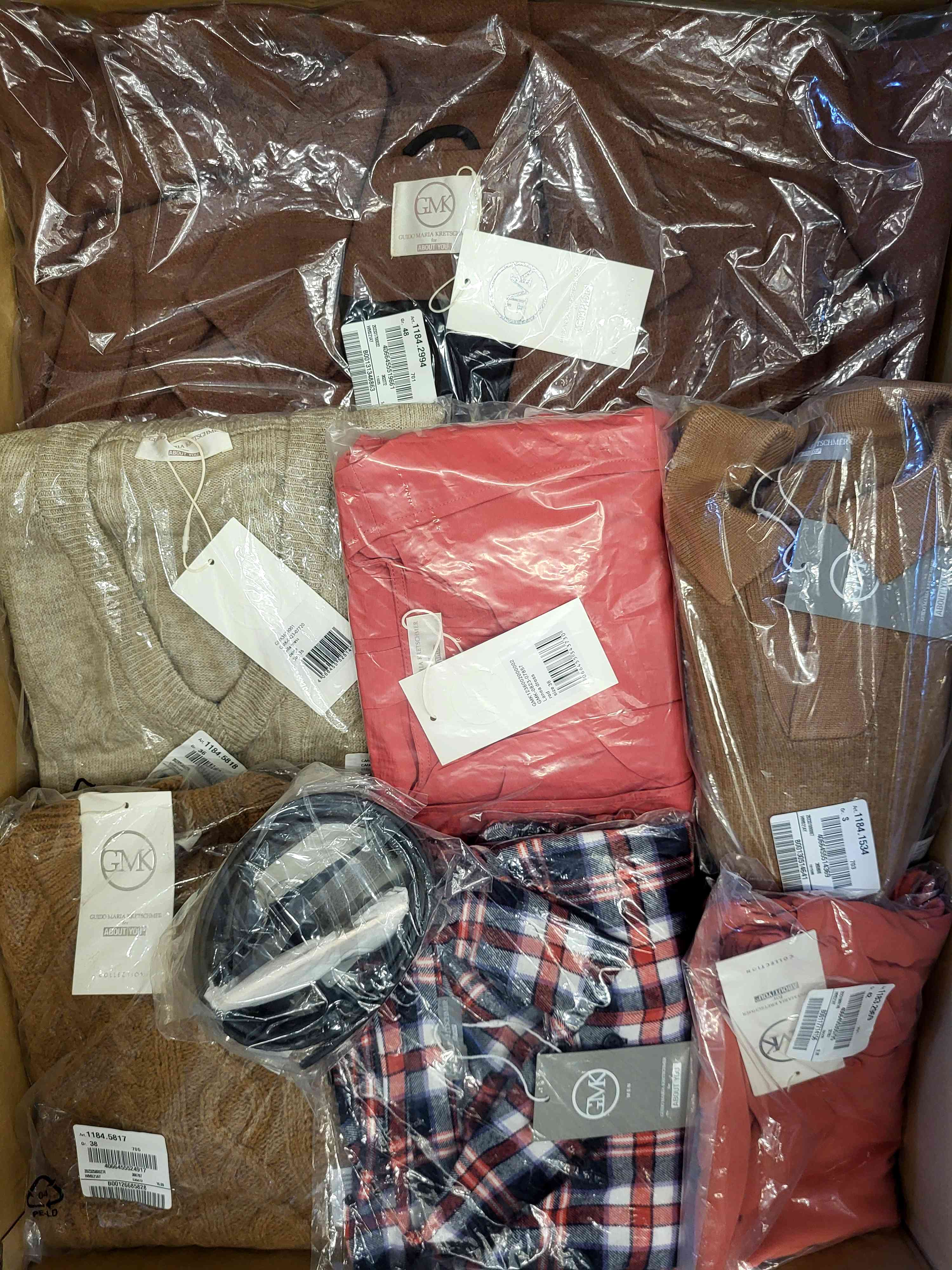 The package includes approximately 30 items of women’s clothing, including jackets, coats, jumpers, blouses, trousers, dresses, blouses, tops, belts, bags, socks. There are also men clothing in packages.